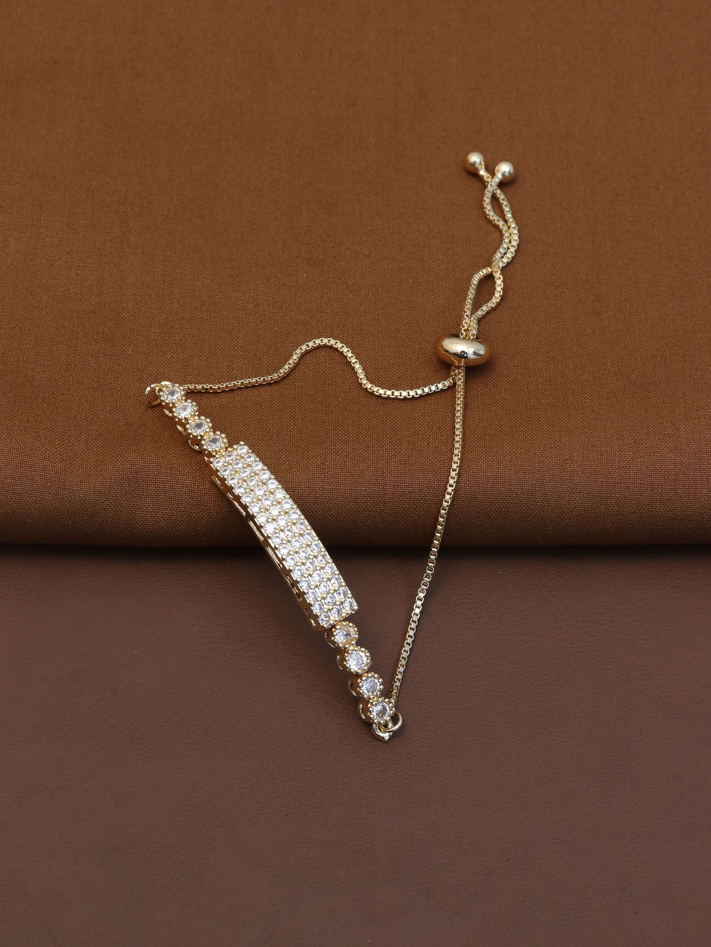 Beautiful female bracelet with american diamond and light gold plated chain.